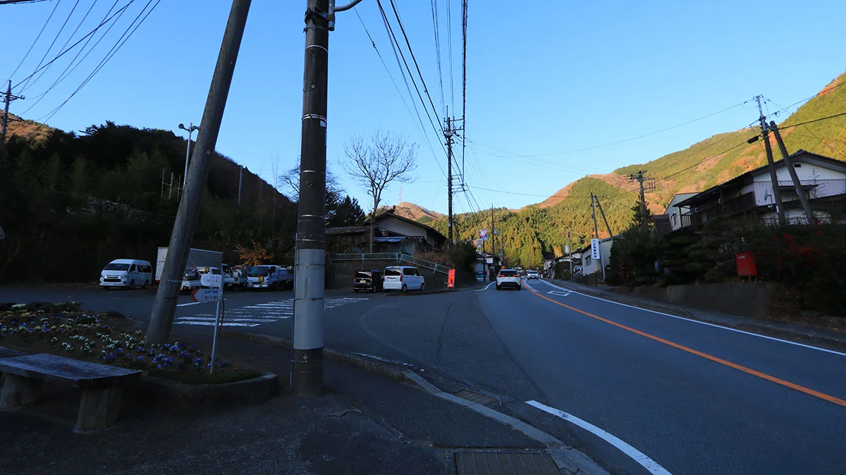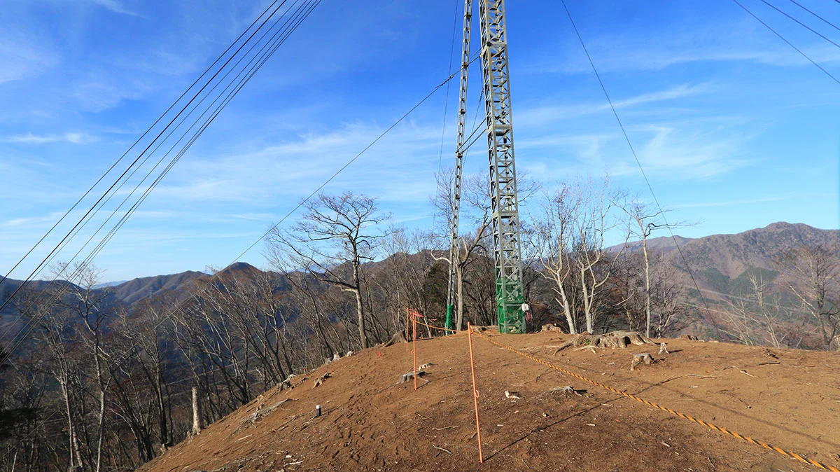「東京電力 東山梨変電所」の建物までくると登山口まであと少し。ちなみに車だと、東山梨変電所の裏手の路肩に車を駐車するスペースがあり、路肩だが公式な駐車場となっている。