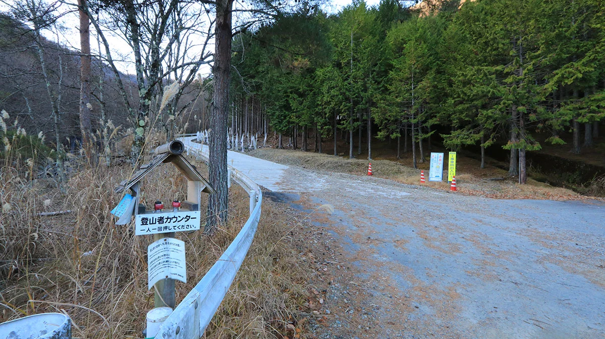 ココが登山口って目印のある場所はなかったが、たぶん登山者カウンターのあったところかと。本稿では、レポートの区切りとしての便宜上、以降山道となる、上の写真の場所を登山口とする。