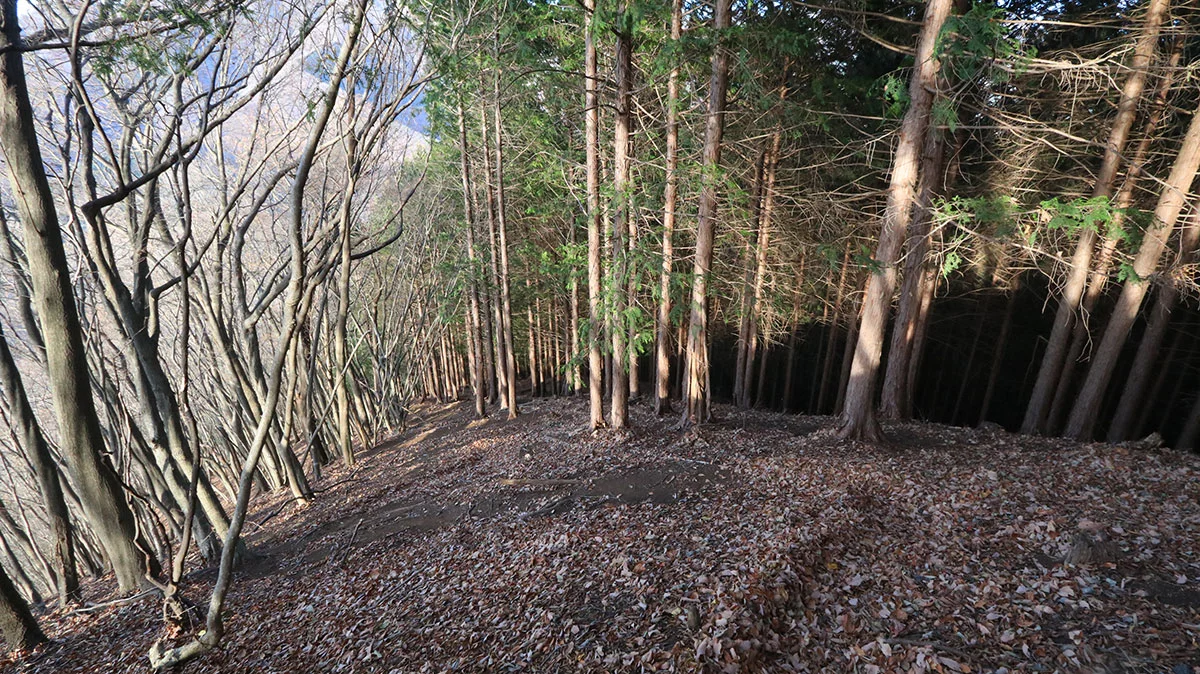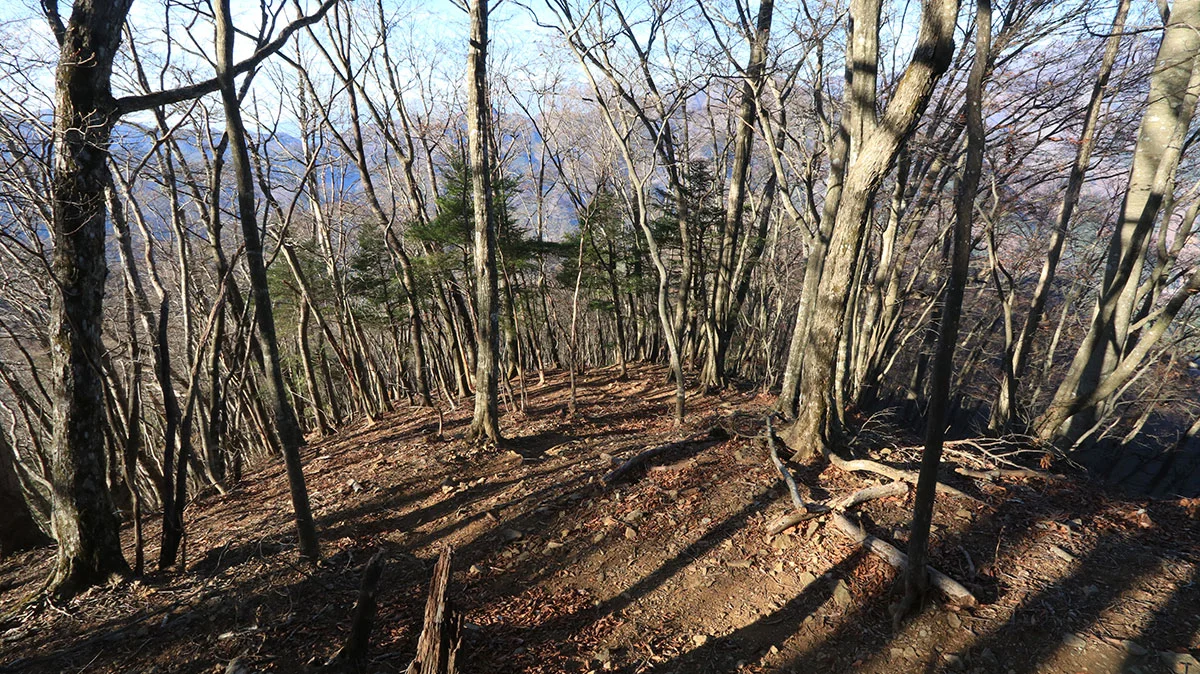 角研山は樹木に覆われており、展望・眺望は望めない。