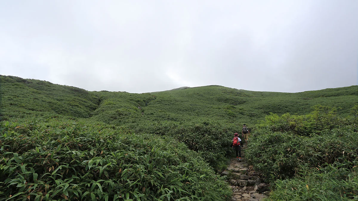 全体を通して、千蛇谷を除けば、傾斜の緩やかな道が多かった印象。ただ、単純標高差は1,086m、距離も上りで9km弱あるので、傾斜が緩やかな分、長い距離を歩かされた感じ。体力的難所はなんといっても千蛇谷。アルプスのカール地形と同じタイプで、終盤に立ちはだかるため、体力的にかなりキツイ。幸い自分のときは霧が出ていたから良かったが、霧がなく直射日光をモロに浴びたら、熱中症とかになってもおかしくないレベルだった。