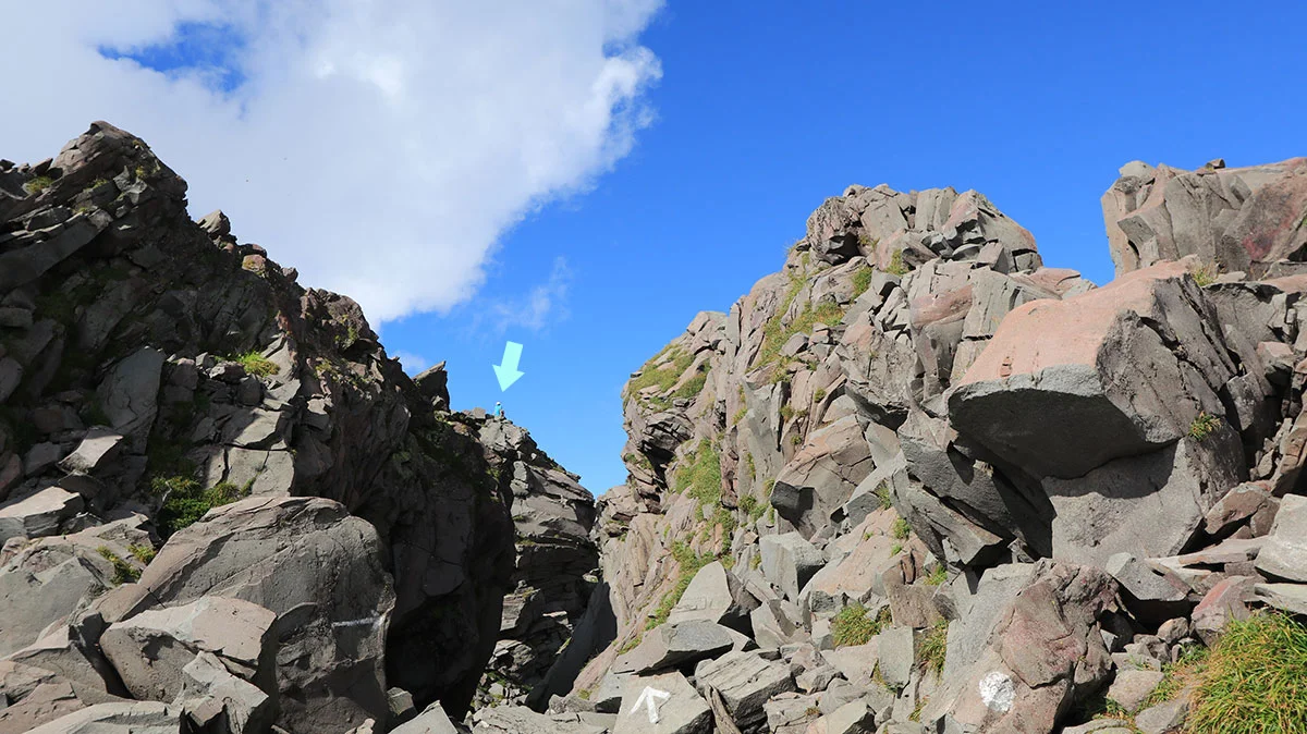「ここは外輪山・千蛇谷分岐です」と書かれた標柱のある地点。ただココも厳密には分岐ではなく、分岐は上の写真の矢印の箇所。