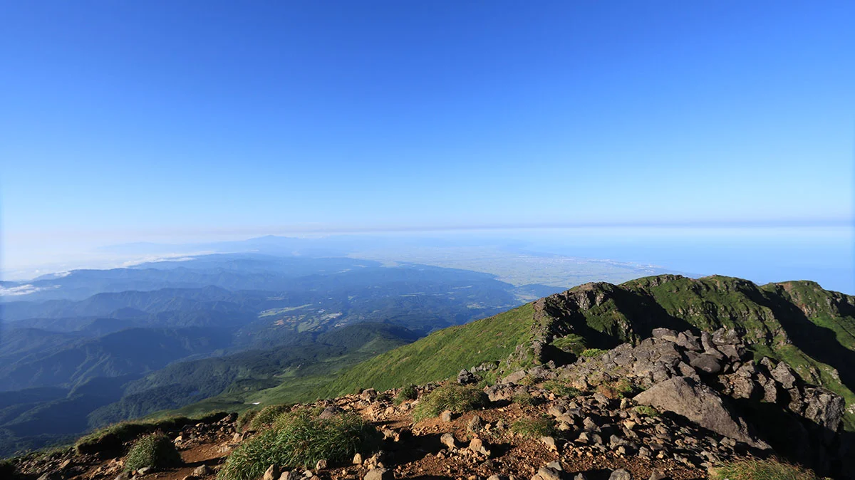 象潟口コースから登り吹浦口コースで下る、猛暑の鳥海山登山