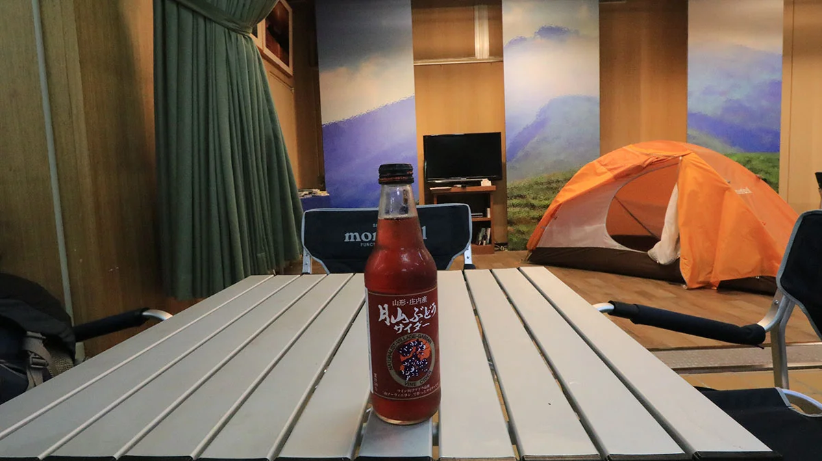 だが、まさかの水不足で日帰り入浴お休み中。猛暑で汗だくだったので、大平山荘の温泉を楽しみにしていたので、かなりショックでした。しかもトイレも使えず..。ただ、冷えた飲み物はあったので、「月山ぶどうサイダー」など、飲料水を3本連続購入して、2日間の喉の渇きを潤しました。お疲れ様でした。