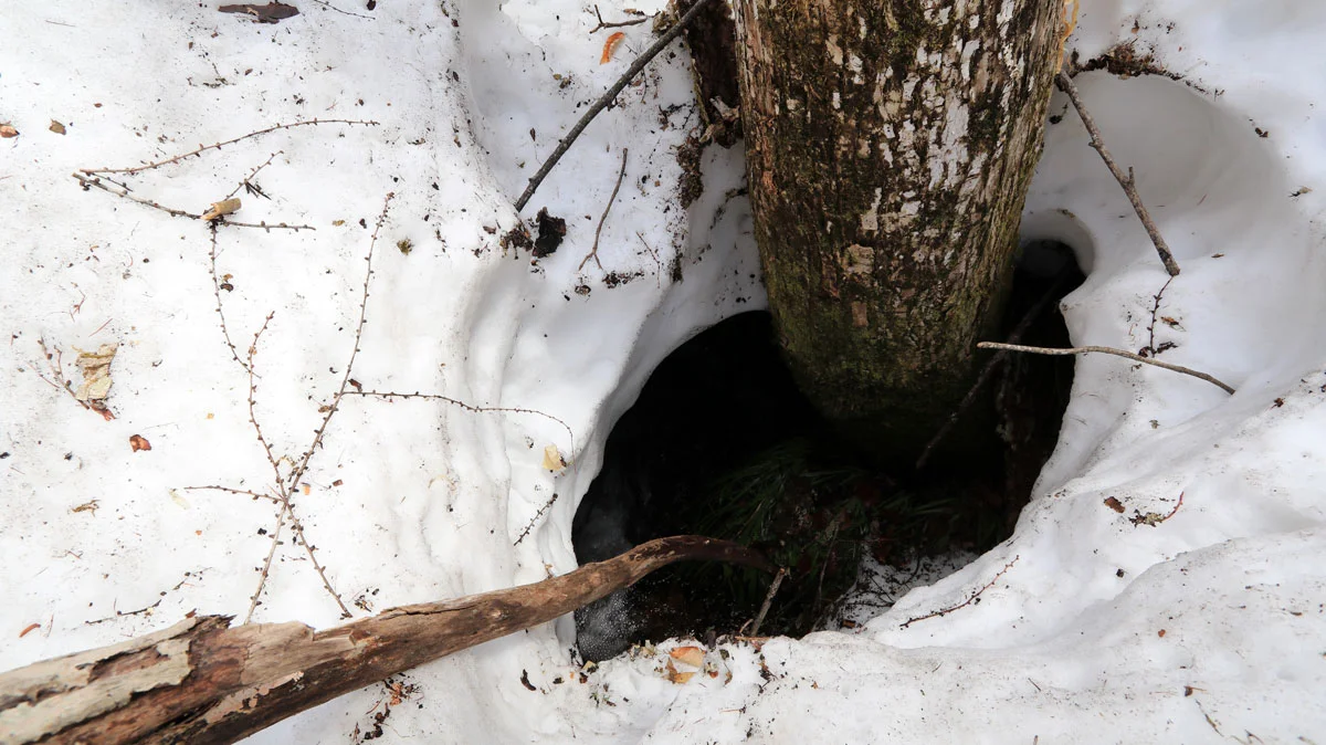 木の周りだけ雪が溶けている現象は、雪根開き(ゆきねびらき)または、根開き(ねあき)と呼ばれる、雪山の春に見られる現象。木のぬくもりに加え、春になると木が活発に地下水を吸い上げるらしく、その地下水が外気より暖かいため、木の周りだけ雪が溶けるらしい。