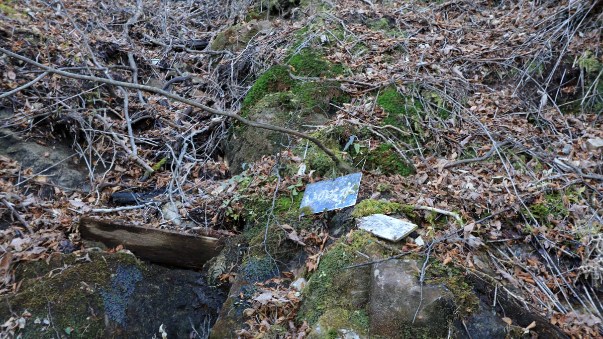 1.2km地点手前あたりに「いのち水」という枯れた水場がありました。山と高原地図にも掲載されていないので、水場として機能していないようだ。調べると、台風か大雨直後以外は枯れていることが大半とのこと。