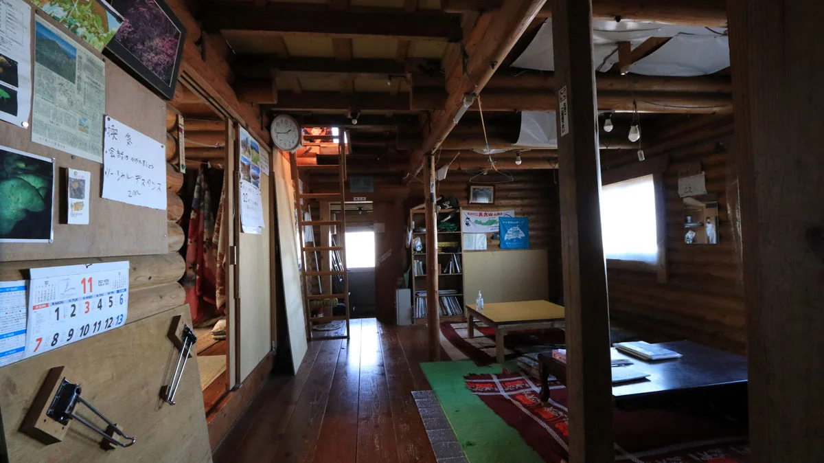 現在は無人の山小屋だが、数年前まで管理人が週末のみ常駐していた山小屋なので、内部はかなりきれい。[九合目小屋内部]