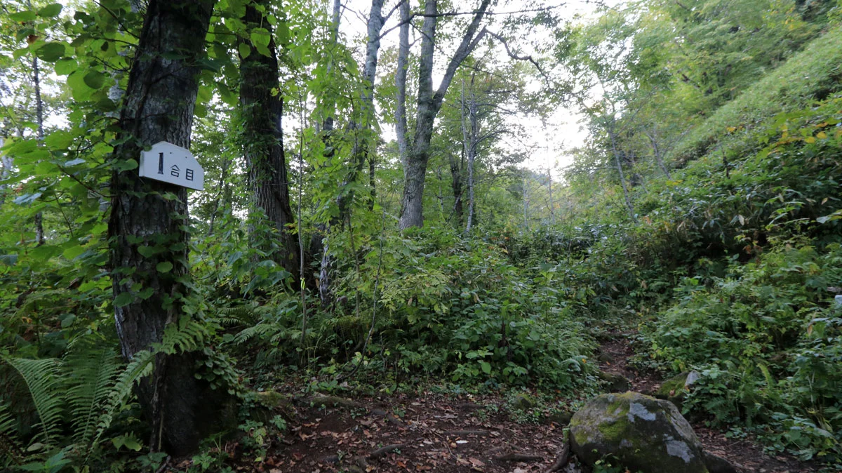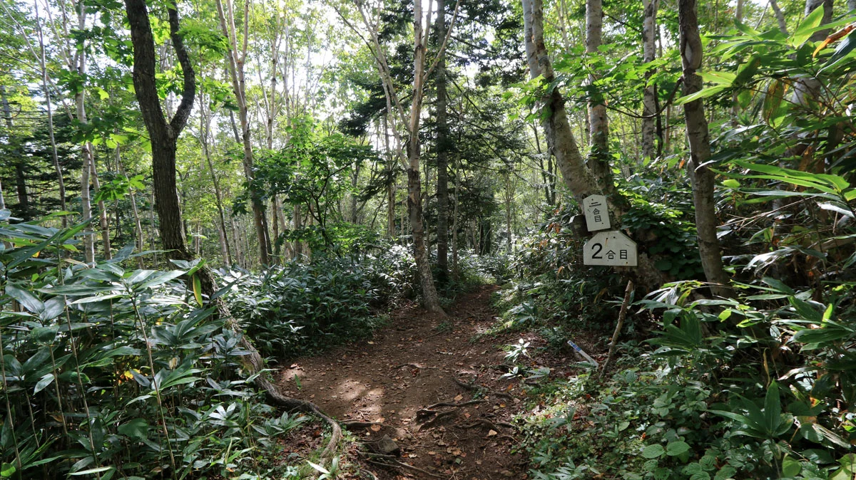 倶知安コースには○合目と書かれた標識がコース上に設置されている。まず、1合目までは平坦な道。