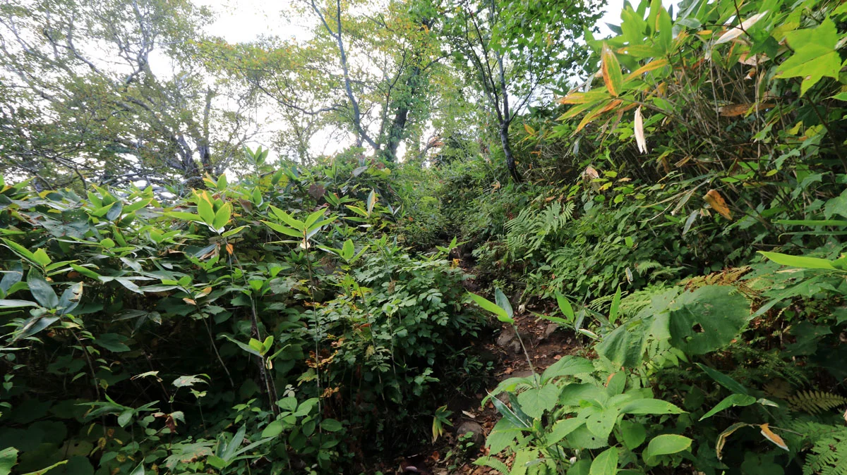 記事では淡々と綴っているが、実際は結構しんどかった。コロナの影響で5月以降は登山をしておらず体がなまっている上、登山口からの標高差が1,548mもあるタフなコース。ボディーブローのように、徐々に体力を消耗していく感じ。道が単調なので、疲れも感じやすい。