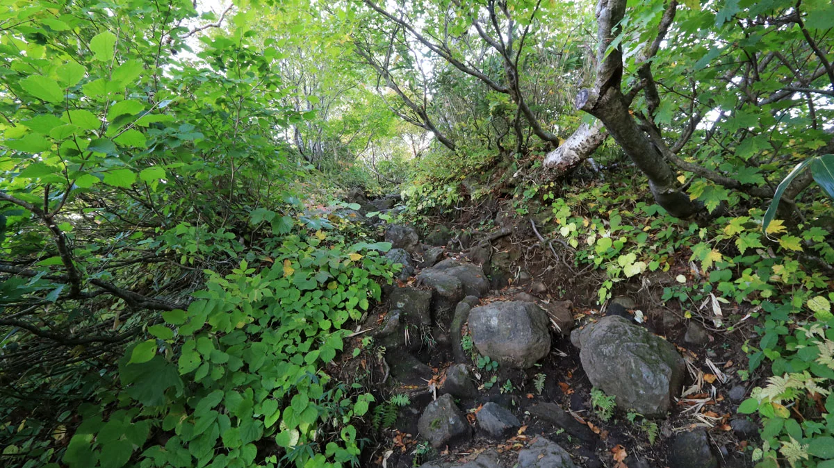 1合目以降は本格的な上り道で、ココから羊蹄山の山体に取りつくイメージ。ちなみに、山と高原地図には1~2合目の間に「風穴」と書かれているが、特段そのような場所は見当たらなかった。