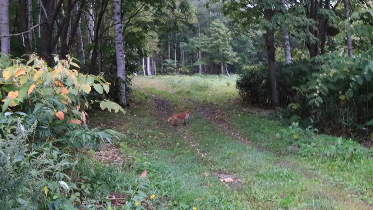 国道5合線をひたすら真っすぐ進み、「羊蹄登山口」バス停付近で左に曲がる。ちょとしたトピックスとして、国道5合線を歩いているとき、「きつね」を見かけた。これまでの登山できつねを見たことはなかったので、さすがは北海道です。