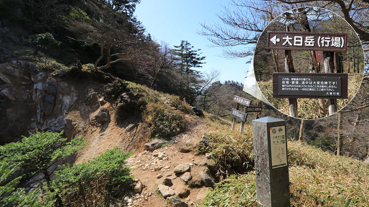 - 東の前鬼登山口から大日岳、深仙の宿(じんぜんのしゅく)などを経て山頂を目指すコース。厳密には、小仲坊(おなかぼう)以降から登山道となる。古くからあるコースだが、標高差は約1,000mあり、健脚向け。