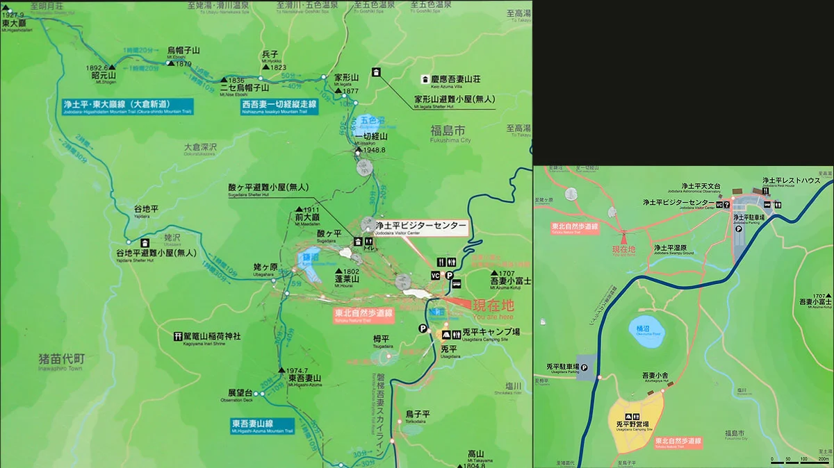 - 2014年12月12日から一切経山の噴火警戒レベルが2となり、一切経山への登山道が閉鎖されていた。しかし、2016年10月18日に一切経山の噴火警戒レベルが1に下がり、登山道通行止めが解除されたのを機に、2017年から計画していた吾妻山縦走登山。2017年は行きそびれたため、2018年6月に再度計画を立案した。