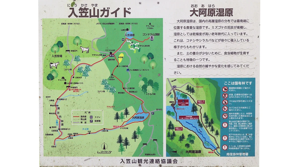 - 入笠山だけでは少し物足りないという方に向けた、大阿原湿原まで足を伸ばすルート。