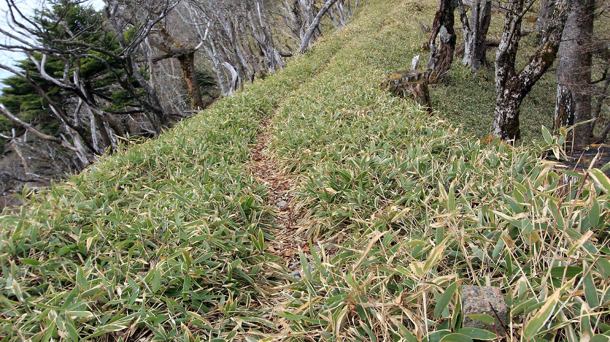 ココが山上ヶ岳山頂のお花畑。一面藪笹が広がっている